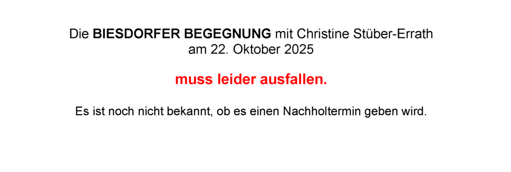 Abgesagt: nächste BIESDORFER BEGEGNUNG am 22.10.2025